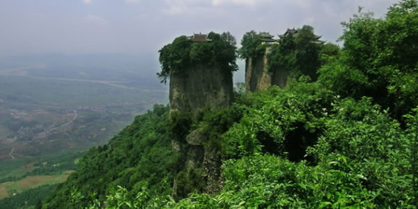 竇圌山:又名圌山,位于四川江油城北20公里的涪江東岸。又名圌山。相傳唐代彰明(今屬江油縣)主簿竇圌(字子明)隱居于此,故名。自麓至頂約5公里許,行道迂回盤旋,林木蒼翠,景色秀麗。 李白少年時(shí)曾游此山,題下千古絕句“樵夫與耕者,出入畫屏中”,后國(guó)民黨元老于右任手書鐫刻于山中石碑之上。