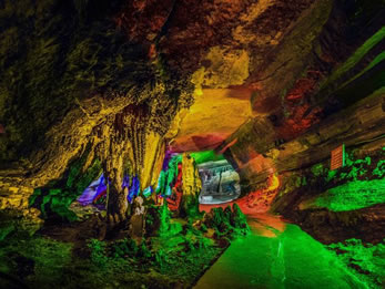 可謂山山有洞,洞中有洞,洞洞毗鄰,各具特色。洞內可游面積在2萬平方米以上的溶洞有:牛角嵌、獅子洞、中峰洞、宋家洞、樓房洞、老龍洞、仙人洞、仙女洞等40余個。這些溶洞,或臨清溪,或處絕壁,有的須匍匐而進,有的要潛水而入,洞中景觀都保持著原始風貌。其中已開發(fā)的中峰洞、獅子洞、宋家洞、樓房洞等景觀奇特,獨樹一幟。三潮水、變色泉、風泉、跳魚泉等異彩紛呈,蔚為壯觀。景區(qū)最大的溶洞中峰洞又名佛光洞,因洞內顯影佛光而得名。它集雄偉、險峻、奇麗、神秘于一體。分上洞、中洞、下洞三層;大洞、中洞、小洞三種;旱洞、水洞、風洞三類;共由上、中、下、水、峽五部分構成;是一座多層次、多類型、多特色的地下溶洞世界。全長1.5萬余米,面積60萬平方米,已開發(fā)7000米,可游面積20萬平方米。洞內阡陌縱橫,狀如蛛網(wǎng),峽谷深淵,氣勢磅礴,乳筍林立,石芽參差。該洞有三個出口,洞道空間大,冬暖夏涼,氣候宜人,洞內溫度、濕度、空氣皆優(yōu)。歷年溫度恒定在18℃,濕度為96%至98%,在國內外溶洞中絕無僅有洞內有仙風神韻的瑤池仙境,奇幻異象的巴人風情,仰天長嘆的霸王別姬,參憚悟道的萬佛朝圣,天造地設的巴國遺風,紫微高照的佛光普照,水光山色的天河放舟,歲月鐫刻的滄海桑田,是一座地下奇城。