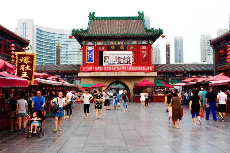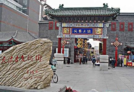 天津古文化街于一九八六年元旦建成開業(yè),整體建筑為仿清民間式建筑風格,天后宮(媽祖廟)位于全街的中心。全街近百家店堂,有經(jīng)營天津地方特色的楊柳青年畫的楊柳青畫社,經(jīng)營泥人彩塑的泥人張彩塑工藝品經(jīng)營部,有經(jīng)營文房四寶,名人字畫的四寶堂,春在堂,有經(jīng)營文物古玩的文物公司萃文齋門市部,還有經(jīng)營全國各地的景泰藍,雙面繡,牙玉雕,藝術(shù)陶瓷,中西樂器金銀飾品等上萬種名優(yōu)工藝品的幾十家店堂,各種商品貨真價實,物美價廉,商家以質(zhì)量和信譽吸引中外游客。