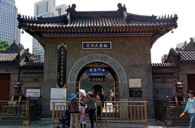 天后宮是古文化街的中心地帶,在天津很早就有“先有天后宮,后有天津衛(wèi)”之說。在天后宮內(nèi)供奉的是“天后娘娘”——林默,其廣場有兩棵豎立了600余年大帆桿,在廣場的東側(cè)、臨近海河方向有一座戲樓,天后宮廣場形成了相對獨立的空間。