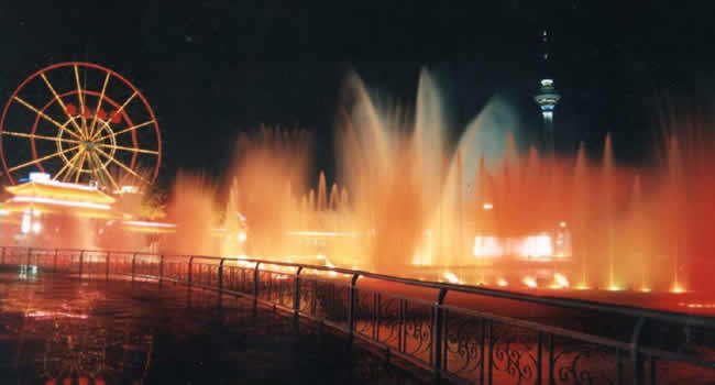 。3)、數(shù)控噴泉:隨著音樂(lè)節(jié)拍,自動(dòng)變換組合各種水型,并同時(shí)噴出“火柱”、“火球”、形成“火龍”、“火!钡取