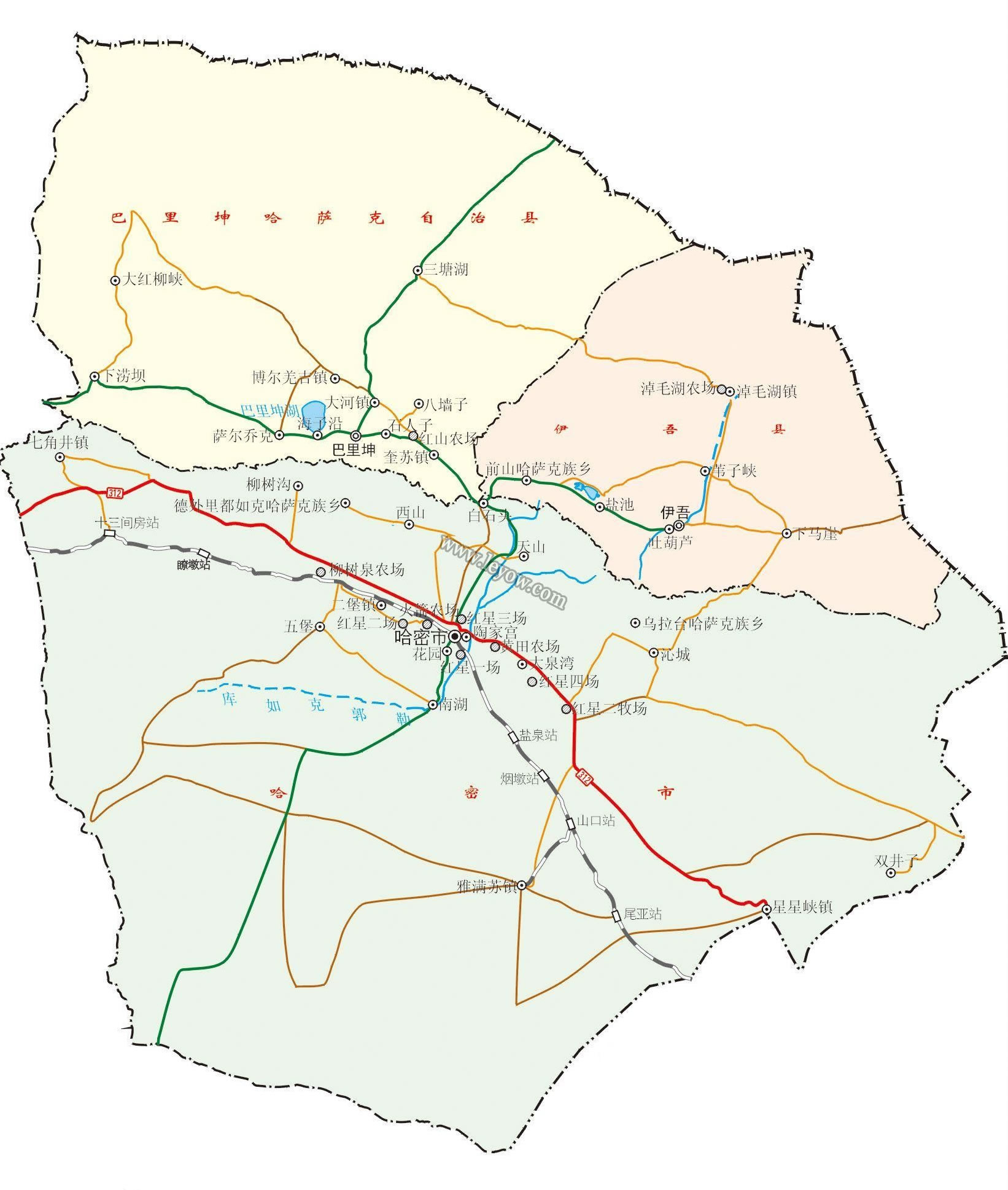 伊州區(qū) 面積80791平方千米,人口431039,政府駐廣東路2號,下轄5個街道、7個鎮(zhèn)、12個鄉(xiāng)