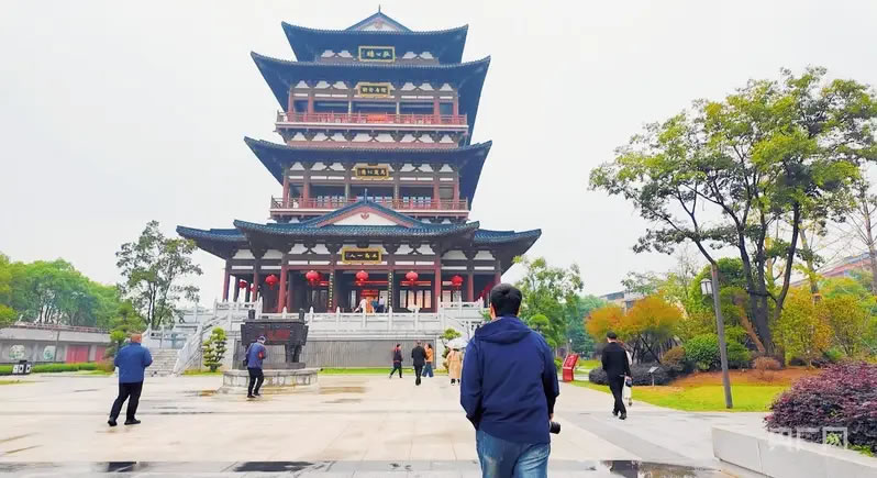 采風(fēng)團(tuán)一行循著長(zhǎng)江岸線,在狄公樓探尋千年文脈(央廣網(wǎng)記者 周蓓 攝)