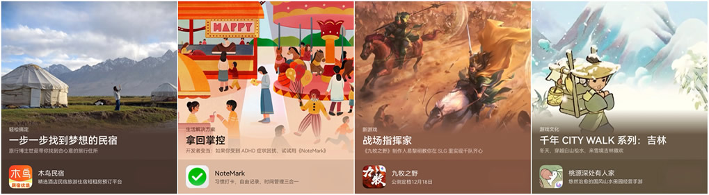 此時北極圈內(nèi)正處極光季,如果想去北極圈追光,可以在AppGallery查看“終極旅行:追極光”專題,藍(lán)冰,極光,限定美景這個冬季一次滿足!此外,AppGallery還有更多精品專題,如熱播影音展覽、拍攝美化指南、旅游出行攻略、生活實用妙招、精品游戲介紹等。要是刷到感興趣的內(nèi)容,只需在Story頁面底部點擊“分享”按鈕,就能一鍵轉(zhuǎn)發(fā)給好友,共享精彩內(nèi)容和APP。在“探索”頁面,還有很多如一步一步找到夢想的民宿、拿回掌控、戰(zhàn)場指揮家、千年CITY WALK系列:吉林等專題,總能找到合你心意的內(nèi)容。