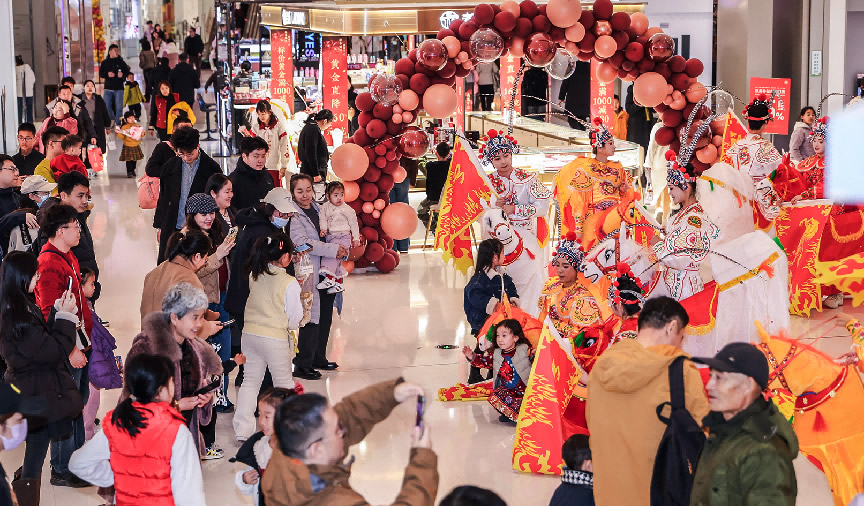 在濟南貴和購物中心內(nèi),新春雅集、醒獅采青、非遺變臉、音樂雅會、流動詩會等活動精彩呈現(xiàn),受到市民們的喜愛。