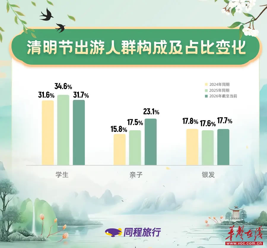 (清明節(jié)出游人群構(gòu)成及占比變化。 圖/同程旅行)