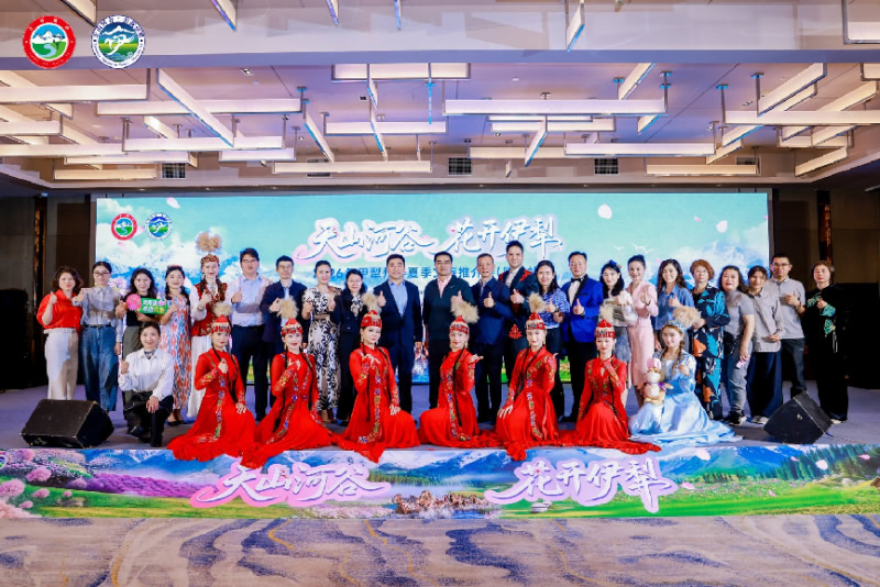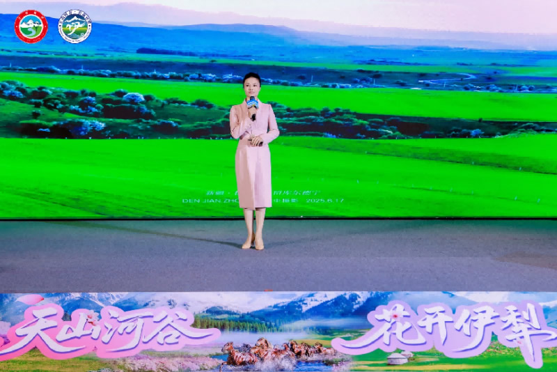 隨后,一段充滿春日氣息的舞蹈《春之樂》為現(xiàn)場增添了靈動色彩。伊犁州文旅推介官率先登場,通過精美的影像與生動的講述,全方位呈現(xiàn)了伊犁“四季皆景、春夏尤美”的獨特魅力——從4月的杏花煙雨,到5月的紅花遍野,再到6至8月的薰衣草海洋與百萬畝油菜花田,一幅幅如詩畫卷令在場嘉賓心馳神往。