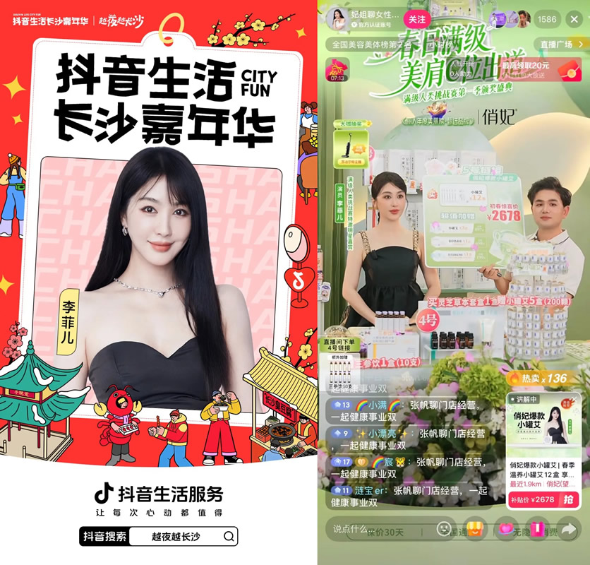 如果說湘菜是長沙的靈魂,那么流淌在星城血液里的“星光”,則是這座城市永遠的支線驚喜。在三月的暖陽里,明星李菲兒驚喜空降俏妃直播間,聯(lián)合品牌創(chuàng)始人張帆一起,打造了一場關于品牌與明星資源深度碰撞的BIGDAY。超過100萬的場觀人數(shù),見證了單場支付突破200w的傲人戰(zhàn)績,整個活動周期更是實現(xiàn)了超高的支付增量。這種強交互、高轉化的明星玩法,讓長沙的消費市場始終保持著敏銳的觸覺。