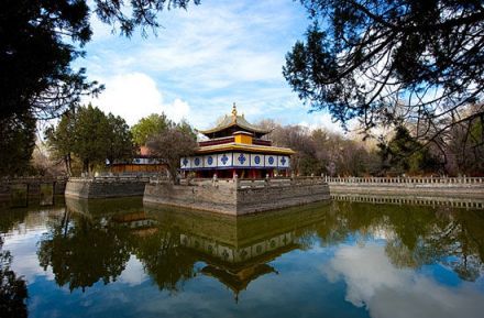 羅布林卡全園分為三個區(qū):東部宮前區(qū)包括入口和威鎮(zhèn)三界閣之前的前園;中部為核心部分的宮殿區(qū);西區(qū)是以自然叢林野趣為特色的金色林卡。每個景區(qū)又根據(jù)功能要求,結合自然環(huán)境,構成不同的景觀。羅布林卡的園林布置,既有西藏高原的特點,又吸取了內地園林傳統(tǒng)手法,運用建筑、山石、水面、林木組景,創(chuàng)造出不同的意境。如湖心宮的設計,就有漢族地區(qū)古代造園藝術中“一池三山”的痕跡。