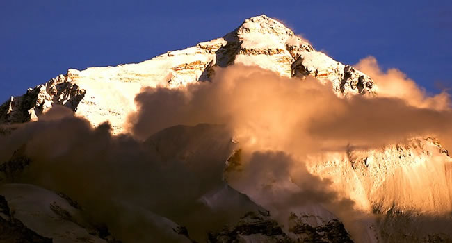 珠穆朗瑪峰是世界最高大的山系喜馬拉雅山的主峰,海拔8,844.43米,為世界第一高峰。珠穆朗瑪為藏語的音譯,意為“女神第三”。山體呈金字塔狀,山上冰川面積達(dá)1萬平方公里,最長(zhǎng)之冰川達(dá)26公里。山峰上部終年為冰雪覆蓋,地形陡峭高峻。是世界登山運(yùn)動(dòng)矚目和向往的地方。山間有孔雀、長(zhǎng)臂猿、藏熊、雪豹、藏羚等珍禽奇獸及多種礦藏。