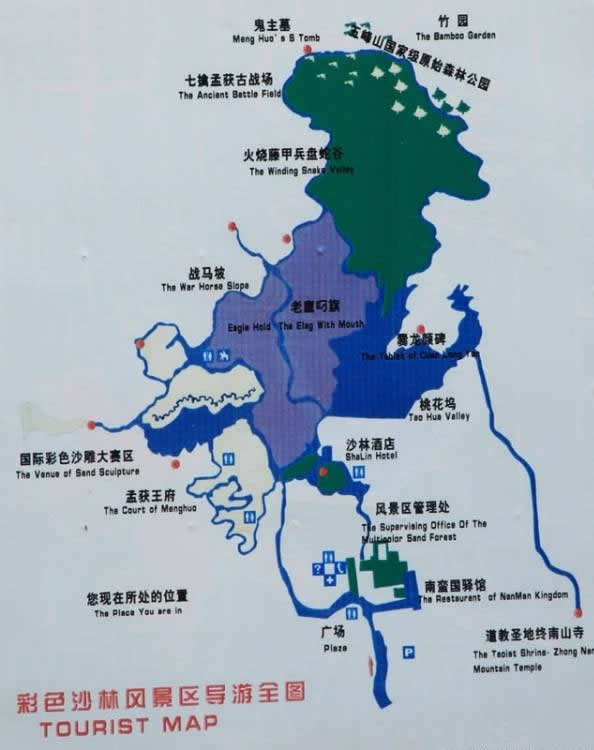 景區(qū)內,有神秘幽深的國家級原始森林公園,有工作效率悲壯的古戰(zhàn)場遺址,有風吹草低見牛羊的萬畝草山,有清澈甘洌的神泉,有水面如鏡的西沖湖泊,有被康有為稱為“天下神品第一”的爨龍顏碑(國家一級文物),有《三國演義》、《西游記》、《炎黃始祖》等二十多部大型影視劇在這里拍攝時留下的很多永久性古典建筑外景,更有天造奇觀、鬼斧神工的彩排色沙林及其所承載的源遠流長的爨蠻文化和三國文化……