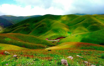 草山地勢(shì)平緩,廣闊無(wú)垠,屬亞高山草甸,草場(chǎng)綿延面積18萬(wàn)畝。歷來(lái)以草、花、云、霧、雪、光、水、峰等旖旎風(fēng)光著稱(chēng)于世,素有“東方新西蘭”之稱(chēng)。
