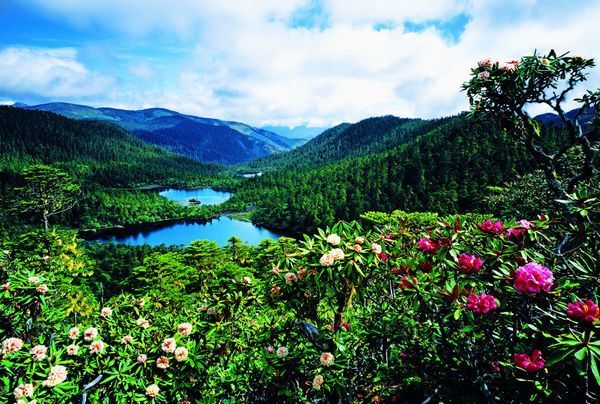 老君山風(fēng)景區(qū)山中的確有九十九個(gè)冰蝕湖,而且每個(gè)湖又呈現(xiàn)出不同的色彩和姿態(tài),與童話般的“九寨溝”相比,它更多了一分大氣、少了一分矯情。特別在每年的5、6月,漫山的花在純凈得幾乎透明的天空下開放了,遠(yuǎn)遠(yuǎn)看去,就像是一張五彩的草甸。