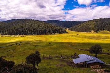 屬都崗湖畔?是香格里拉有名的牧場,這里草場廣闊,水草豐茂,每年春夏之際,成群的牛羊游弋于湖畔,牧棚星星點(diǎn)點(diǎn)置身于湖畔,背負(fù)青山,面臨綠水,牛群點(diǎn)點(diǎn)黝黑,牧笛聲聲人耳,讓人深切地感受到高原人閑放、悠游的生活情趣。