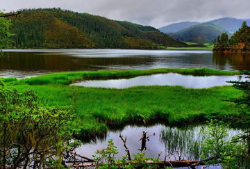 普達(dá)措國家公園內(nèi)的植被以長苞冷杉為主,其次,根據(jù)不同的海拔及陰陽坡著杜鵑、箭竹、苔蘚、忍冬、云杉、高山松、高山櫟、短刺櫟、紅杉、紅樺、山楊、白樺等,從草甸和水生植物上看,主要為蒿草草甸,水生植被主要為香滿群落、光葉眼子菜群落、狐尾群落、梅花藻群落等。
