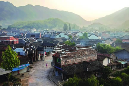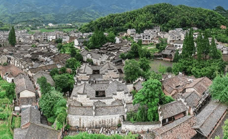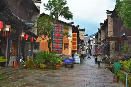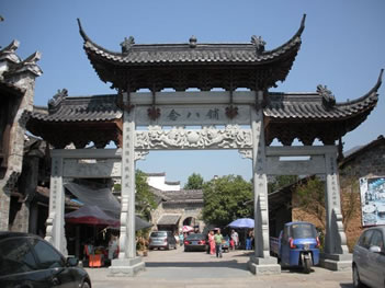 古鎮(zhèn)的大戶有曹、姜、楊、金四家。他們圍繞著宗族而居,至今還保留著36幢完整的古民居大院。站在老街上,最富有特色的是家家戶戶的門楣。門楣多為樓閣式,由梁、枋、檐、望板和垂簾虛柱構(gòu)成四柱三樓式。各個(gè)部件都有精細(xì)的木雕裝飾,題材多為福祿壽、合和二仙等吉祥物。這木制的門楣和江南其他地區(qū)的磚雕門樓有著截然的反差,使人走在這老街之上,無(wú)不被這景色所吸引?催@徽式的馬頭墻、浙式的屋脊、贛式的檐櫞、閩式的土墻,其內(nèi)涵的豐富已足以使建筑學(xué)家所驚嘆。