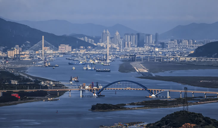 20世紀(jì)90年代開始,舟山市開始規(guī)劃大陸連島工程。舟山共建成跨海大橋20余座,這些大橋橫跨于各島之間,成為海島經(jīng)濟(jì)的生命線。1999年9月26日,舟山跨海大橋的第一座大橋岑港大橋正式動(dòng)工,此后響礁門大橋、桃夭門大橋、西堠門大橋、金塘大橋相繼完工,舟山跨海大橋2009年通車,大陸連島一期、二期工程順利完成。此外東海大橋與2005年正式貫通,打通了舟山嵊泗縣到上海的通道,連接舟山本島和岱山島的舟岱大橋于2021年12月正式通車,六橫跨海大橋等正在建設(shè)中。