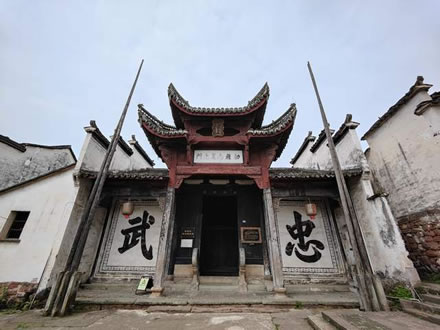 位于村的中心,坐北朝南。前面有一個名曰“鐘池”的水塘,鐘池有一道墻,正面是一幅大八卦圖(左),背面是一個“!弊帧4蠊梦挥阽姵乇眰(cè),始建于明代,據(jù)說是江南地區(qū)僅存的諸葛亮紀(jì)念堂。祠堂前后五進(jìn),建筑面積700平方米。里間十分開闊,可供數(shù)千人舉行活動。堂內(nèi)壁上繪有三顧茅廬、舌戰(zhàn)群儒、草船借箭、白帝托孤等有關(guān)諸葛亮的故事壁畫。堂外圍墻旁現(xiàn)存六株龍柏,暗示諸葛后人六族繁衍,人丁興旺。門庭飛閣重檐,高約10米,上懸一塊橫匾“敕旌尚義之門”。頂層有明英宗于正統(tǒng)四年(1439)所賜盤龍圣旨立匾一方,表彰諸葛彥祥賑災(zāi)捐谷千余石的義舉。整座建筑古樸典雅,氣勢恢宏,保存完好。