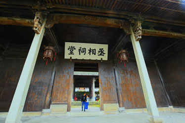 丞相祠堂也是為紀(jì)念諸葛亮而修建的,與大公堂相距百米,面積1400平方米。坐東朝西,平面按“回”字形布局,有屋52間,由門廳、中庭、廡廊、鐘鼓樓和享堂組成,古樸渾厚,氣勢非凡。祠堂雕梁畫棟,門窗欄桿等部件均雕刻精細(xì),美不勝收。中庭是祠堂最精彩的部分,中間四根合抱大柱,選用上好的松、柏、桐、椿四種木料制成,取“松柏同春”之意,祈求家族世代興旺。中庭兩邊廡廊各七間,塑諸葛后裔中的杰出人士,用來激勵諸葛子孫們奮發(fā)向上,成就一番事業(yè)。從廡廊拾級而上,兩旁分列鐘、鼓二樓。祠堂最后是享堂,中塑諸葛亮像,高2米余,兩側(cè)分侍諸葛瞻、諸葛尚及關(guān)興、張苞像,氣韻生動,呼之欲出。